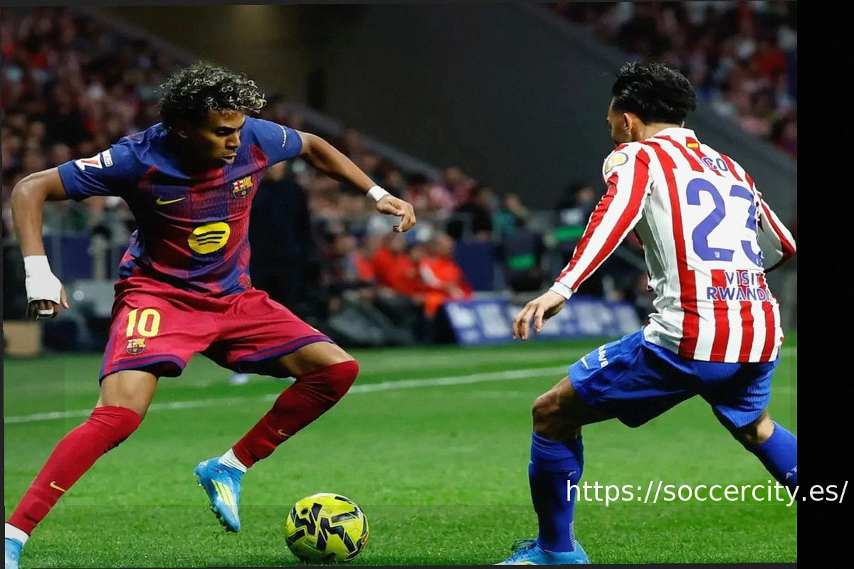 Эта череда моментов сменилась более размеренным ритмом после 15 минут, и несколько более сдержанным стремлением к голу, но такой подход подошел «Атлетико Мадрид». Дани Ольмо и Фермин в комбинации вывели Ламина Ямаля к правой стороне штрафной, но его удар с рикошетом пришелся во внешнюю сторону штанги.