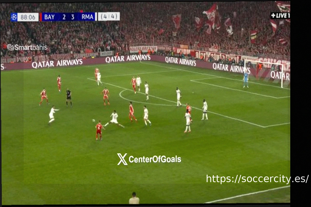 Матч в Мюнхене начался с быстрого гола Арды Гюлера на 36-й секунде после ошибки Мануэля Нойера. Однако уже через пять минут Александер Павлович сравнял счет. Гюлер вновь вывел Реал вперед, забив со штрафного, но Харри Кейн быстро восстановил равновесие. Перед перерывом Килиан Мбаппе сравнял счет по сумме двух матчей. Тем не менее, после удаления Эдуардо Камавинги, Реал пропустил пятый гол за две игры: Луис Диас на 89-й минуте отправил мяч в дальний угол, сделав счет 3:3 по ходу встречи.